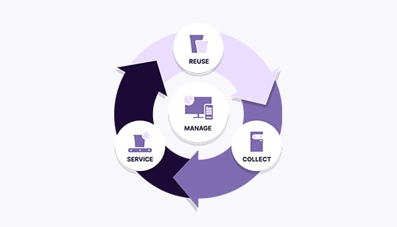 Anders als Einweg-, werden Mehrwegverpackungen (REUSE) gesammelt (COLLECT) und gepflegt (SERVICE).