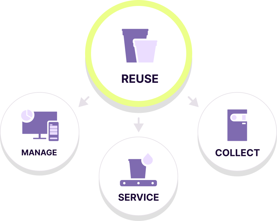 Herstellen, nutzen, wegwerfen - Einweg. Die Vielfalt an Materialien, Additiven und Farben in der Herstellung von Einwegverpackungen machen es in der Entsorgung unmöglich, ökonomisch sinnvoll zu trennen: Ende. Recycling scheitert. Gleichzeitig sind Nutzungszeiträume von Verpackungen sehr kurz und die Stückzahlen gigantisch: Das Müllproblem wächst weiter.